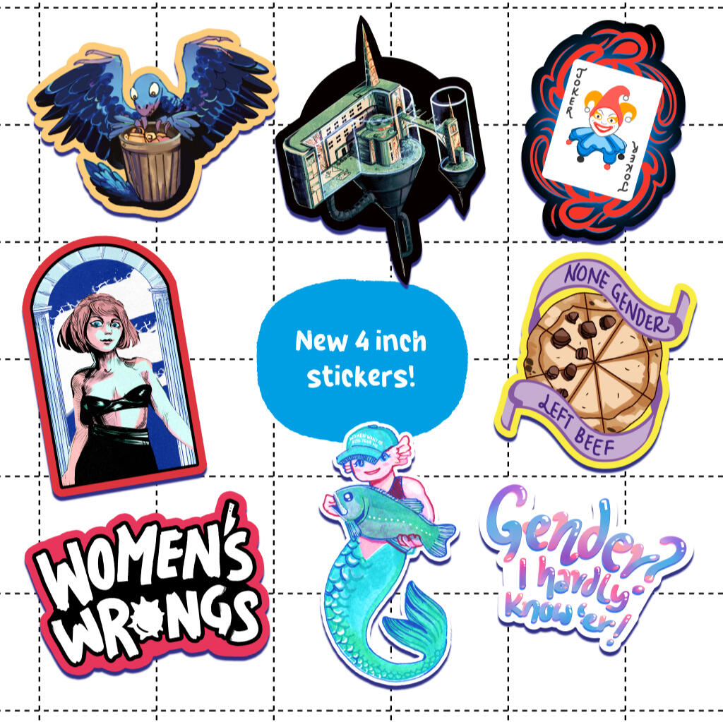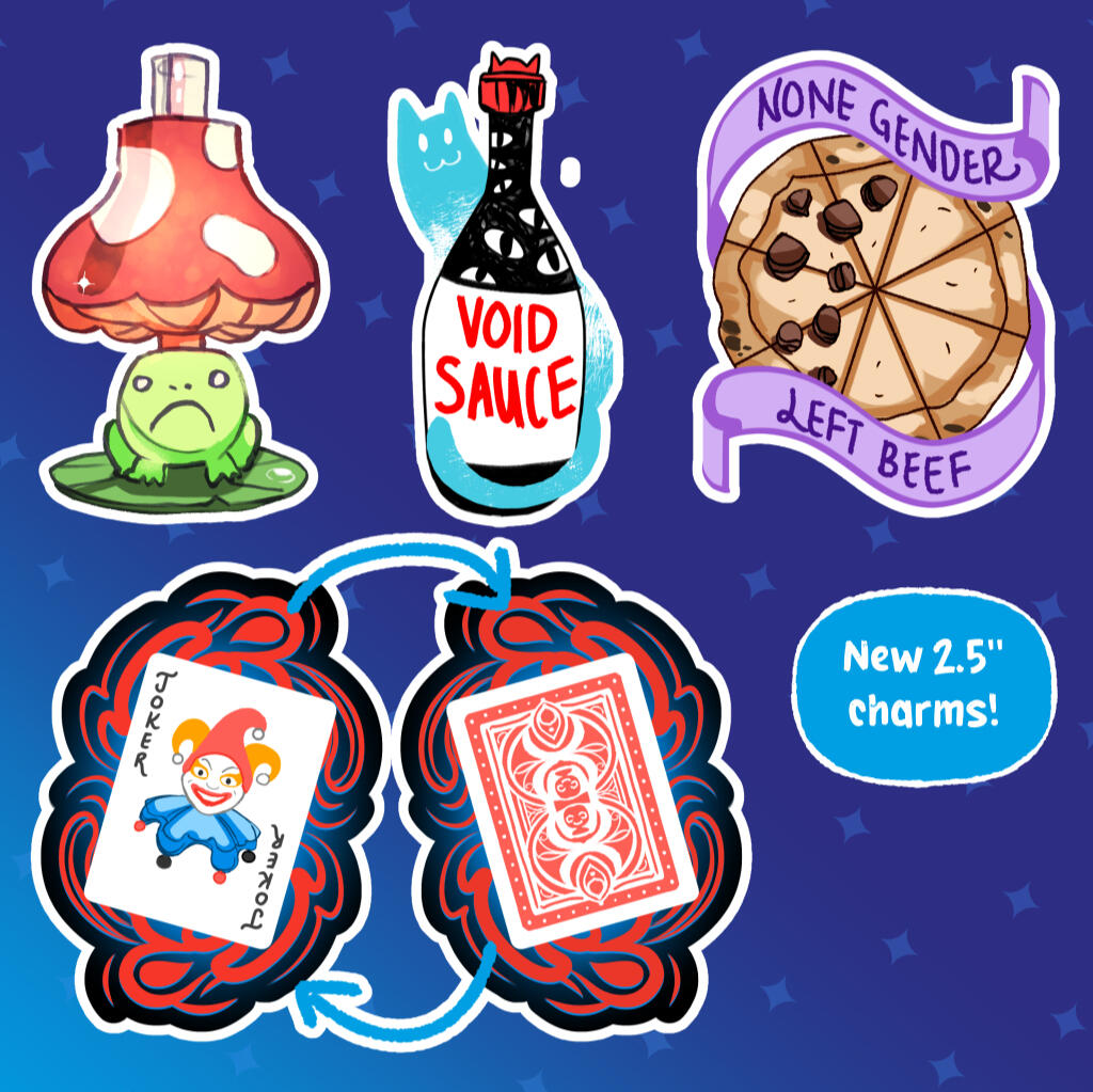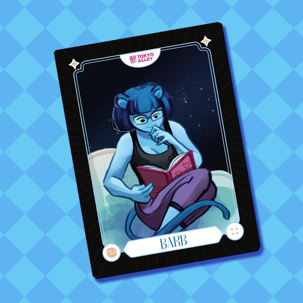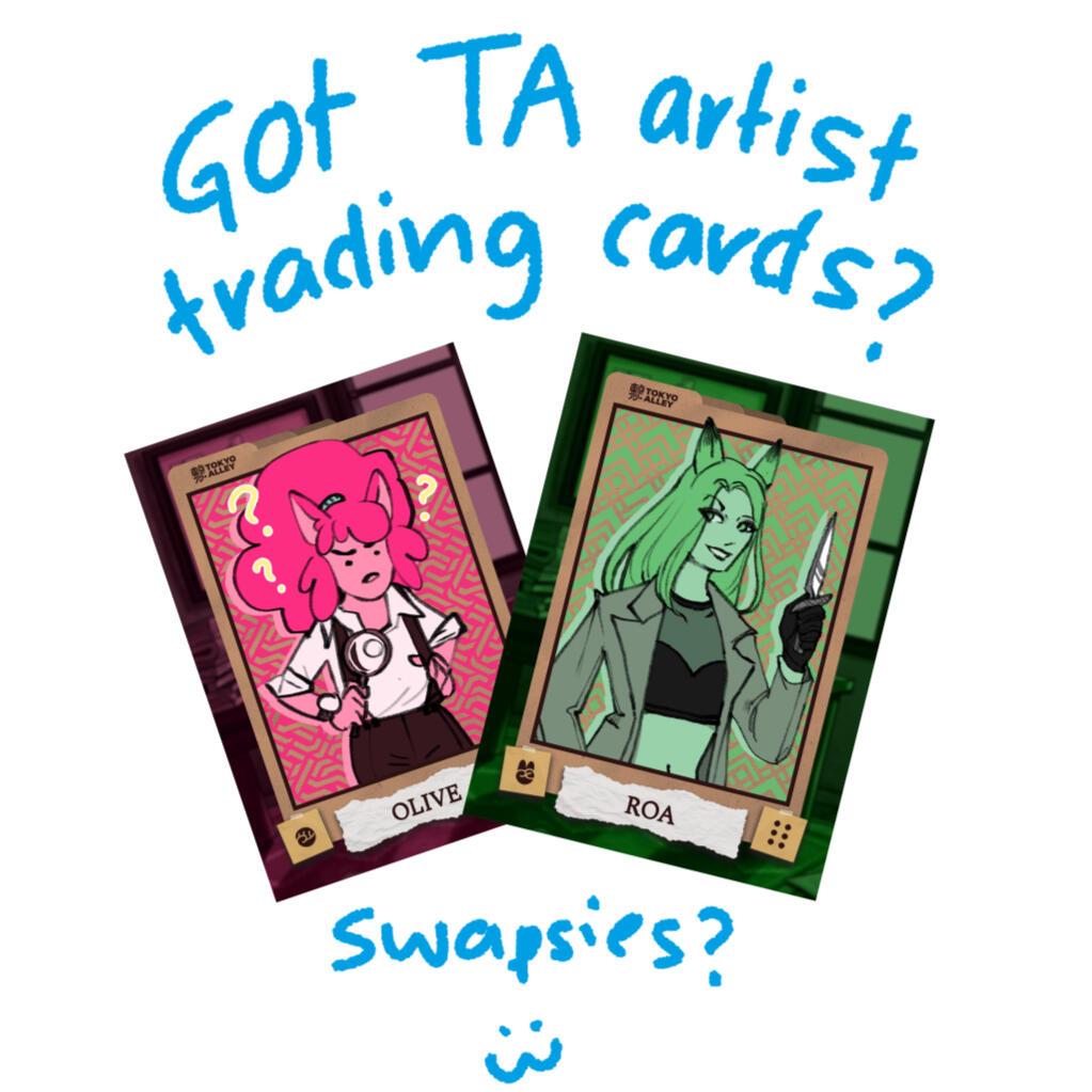 Stickers, Pins and Charms.Tokyo Alley trading cards using a provided template then adding my own artwork.